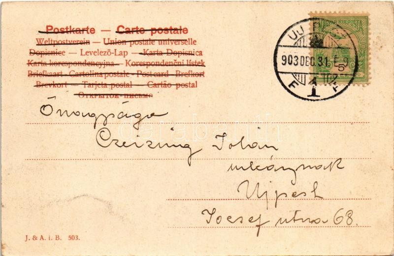 Beschreibung: 1903 Pigs at the bowling alley, small pig used as the ball. J. & A. i. B. 503. (EK)