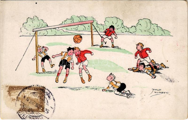 1922 Boys playing football, humour s: Jack Number (EK) https://www.darabanth.com/de/416-Fernauktion/416.0/Ansichtskarten/Sport~2000072/1922-Boys-playing-football-humour-s-Jack-Number-EK~II2583424