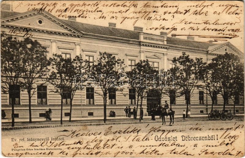 1903 Debrecen, református leánynevelő intézet. Pongrácz Géza kiadása (... https://www.darabanth.com/de/416-Fernauktion/416.0/Ansichtskarten/Ungarn~2000012/1903-Debrecen-reformatus-leanynevelo-intezet-Pongracz-Geza-kiadasa-EK~II2618619