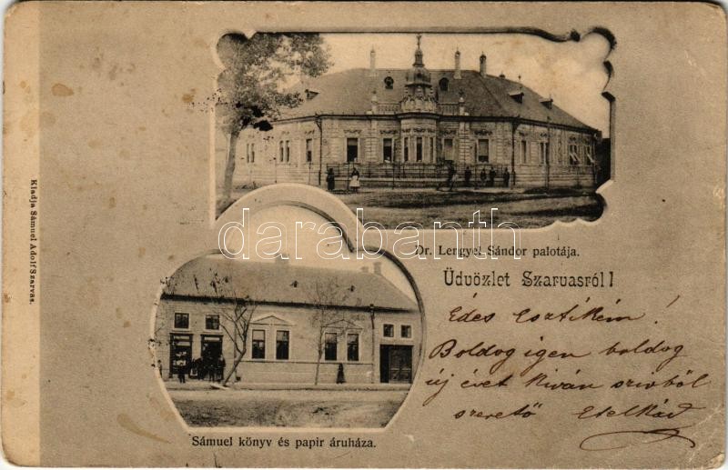 1903 Szarvas, Dr. Lengyel Sándor palotája, Sámuel Adolf üzlete, könyv-... https://www.darabanth.com/de/416-Fernauktion/416.0/Ansichtskarten/Ungarn~2000012/1903-Szarvas-Dr-Lengyel-Sandor-palotaja-Samuel-Adolf-uzlete-konyv-es-papiraruhaza-es-~II2618593