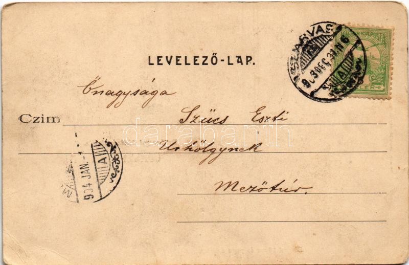 Beschreibung: 1903 Szarvas, Dr. Lengyel Sándor palotája, Sámuel Adolf üzlete, könyv- és papíráruháza és saját kiadása (EB)