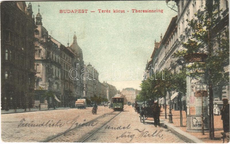 1907 Budapest VI. Teréz körút, villamos, hirdetőoszlop. S.D.M. 57C. https://www.darabanth.com/de/416-Fernauktion/416.0/Ansichtskarten/Ungarn~2000012/1907-Budapest-VI-Terez-korut-villamos-hirdetooszlop-SDM-57C~II2482964