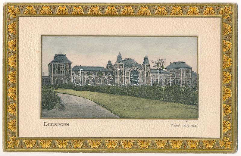 1908 Debrecen, Vasútállomás. Mihály Sámuel kiadása. Szecessziós litho ... https://www.darabanth.com/de/416-Fernauktion/416.0/Ansichtskarten/Ungarn~2000012/1908-Debrecen-Vasutallomas-Mihaly-Samuel-kiadasa-Szecesszios-litho-keret-Art-Nouveau-lit~II2613042