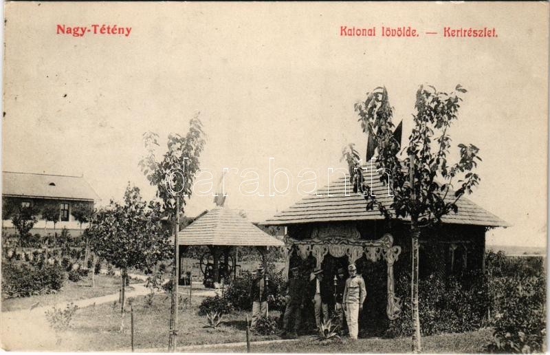 1912 Budapest XXII. Nagytétény, Nagy-Tétény; Cs. és kir. katonai lövöl... https://www.darabanth.com/de/416-Fernauktion/416.0/Ansichtskarten/Ungarn~2000012/1912-Budapest-XXII-Nagyteteny-Nagy-Teteny-Cs-es-kir-katonai-lovolde-kert-reszlet-Ku~II2608674