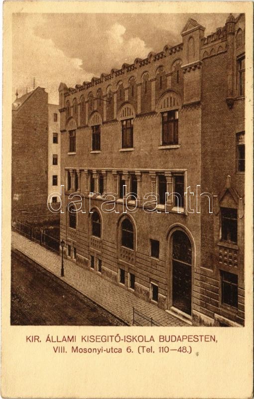 1914 Budapest VIII. Kir. Állami Kisegítő Iskola. Mosonyi utca 6. https://www.darabanth.com/de/416-Fernauktion/416.0/Ansichtskarten/Ungarn~2000012/1914-Budapest-VIII-Kir-Allami-Kisegito-Iskola-Mosonyi-utca-6~II2620065