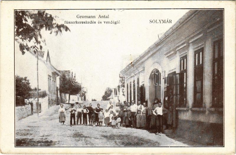 1927 Solymár, Gromann Antal fűszerkereskedése és vendéglője (EK) https://www.darabanth.com/de/416-Fernauktion/416.0/Ansichtskarten/Ungarn~2000012/1927-Solymar-Gromann-Antal-fuszerkereskedese-es-vendegloje-EK~II2622152