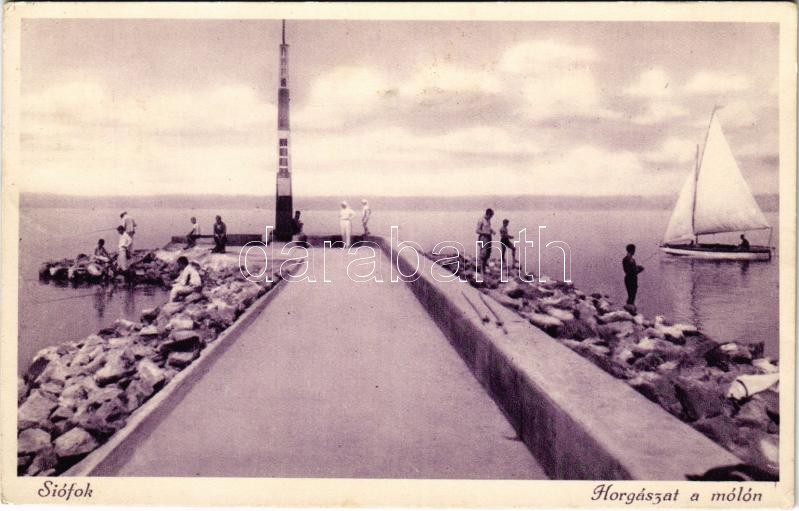 1934 Siófok, Horgászat a mólón (EK) https://www.darabanth.com/de/416-Fernauktion/416.0/Ansichtskarten/Ungarn~2000012/1934-Siofok-Horgaszat-a-molon-EK~II2609269