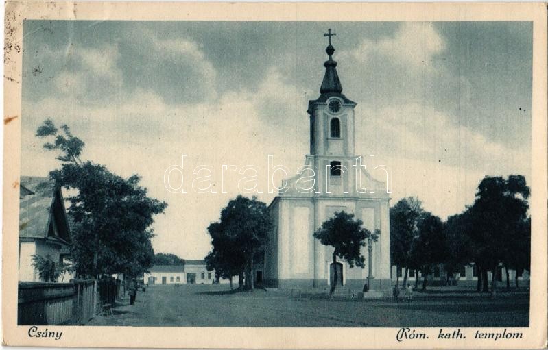 1936 Csány, Római katolikus templom. Hangya szövetkezet kiadása (EK) https://www.darabanth.com/de/416-Fernauktion/416.0/Ansichtskarten/Ungarn~2000012/1936-Csany-Romai-katolikus-templom-Hangya-szovetkezet-kiadasa-EK~II2620772