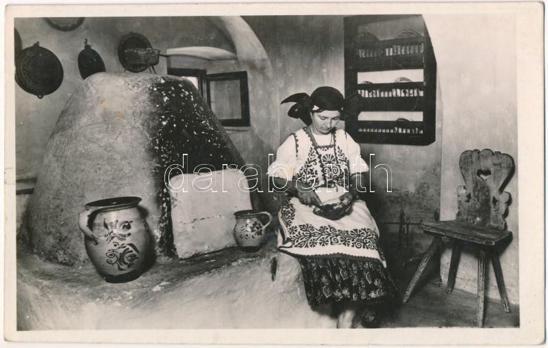 1939 Tihany, M. kir. Balatoni Intéző Bizottság Balatonkörnyéki népművészeti háza, konyha a bubos kemencével. Tervezték: vitéz Nászay Miklós és Tóth Kámán okl. építészek