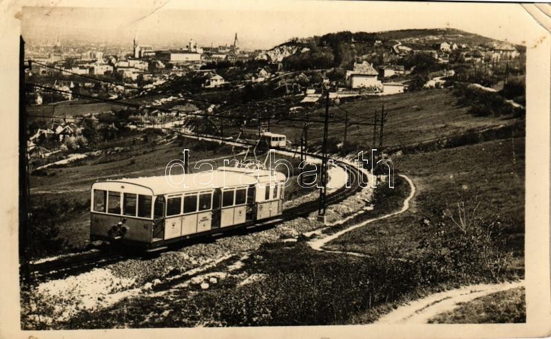 Beschreibung: 1950 Budapest XII. Svábhegy, Fogaskerekű villamos vasút, látkép a Budai hegyekről (EK)