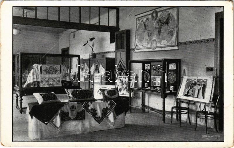 Beschreibung: Budapest VIII. M. K. Állami Nőipariskola kiállítása 1927/28. tanév végén, belső (EM)
