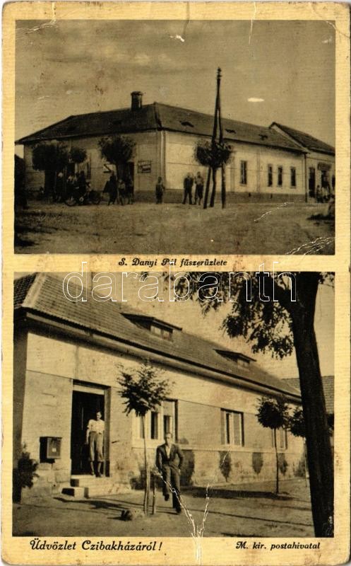 Beschreibung: Cibakháza, S. Danyi Pál üzlete, M. kir. postahivatal (fa)