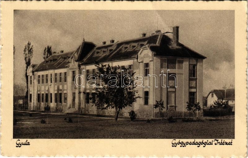 Gyula, Gyógypedagógiai Intézet, külső telep főépülete (fa) https://www.darabanth.com/de/416-Fernauktion/416.0/Ansichtskarten/Ungarn~2000012/Gyula-Gyogypedagogiai-Intezet-kulso-telep-foepulete-fa~II2620911