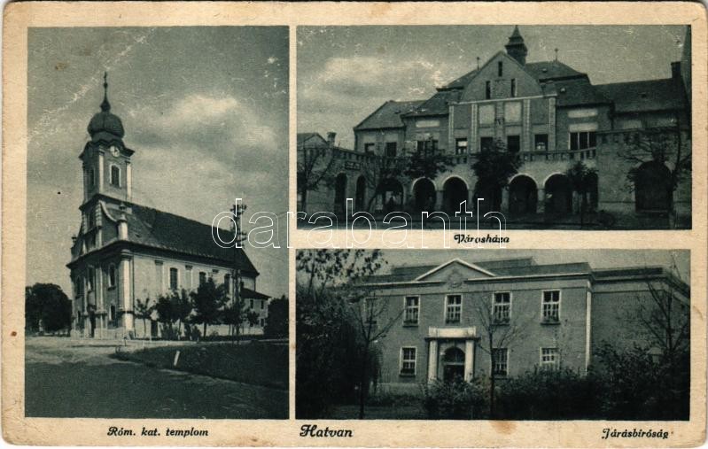 Hatvan, Római katolikus templom, Járásbíróság, Városháza (EB) https://www.darabanth.com/de/416-Fernauktion/416.0/Ansichtskarten/Ungarn~2000012/Hatvan-Romai-katolikus-templom-Jarasbirosag-Varoshaza-EB~II2614666