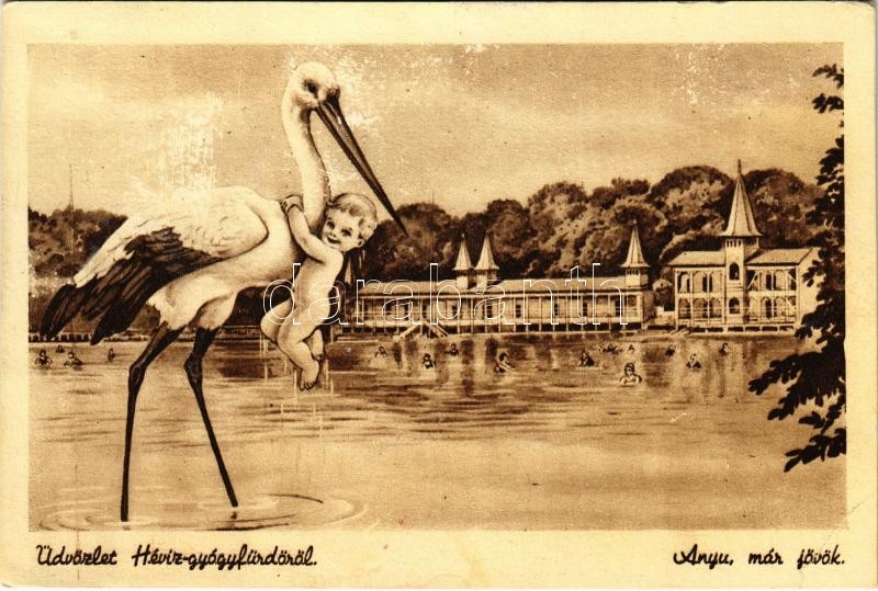Hévíz, "Anyu, már jövök" humoros gólyás lap (EB) https://www.darabanth.com/de/416-Fernauktion/416.0/Ansichtskarten/Ungarn~2000012/Heviz-Anyu-mar-jovok-humoros-golyas-lap-EB~II2609239