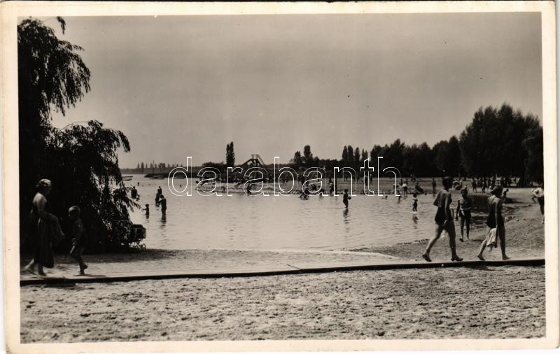 Beschreibung: Keszthely, Strand, fürdőzők