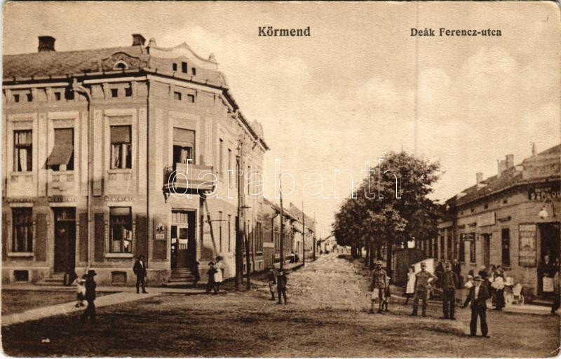 Beschreibung: Körmend, Deák Ferenc utca, Balaton szálloda, üzletek. Vasúti levelezőlapárusítás 24. sz. 1915. (EK)