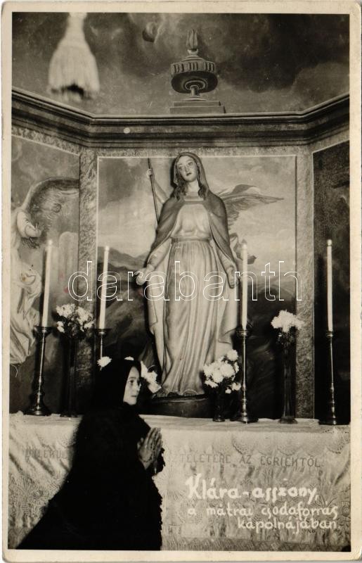 Mátra, Klára asszony a Mária csodaforrás kápolnájában. Sztanek Ede (Pá... https://www.darabanth.com/de/416-Fernauktion/416.0/Ansichtskarten/Ungarn~2000012/Matra-Klara-asszony-a-Maria-csodaforras-kapolnajaban-Sztanek-Ede-Paszto-photo-EK~II2622159