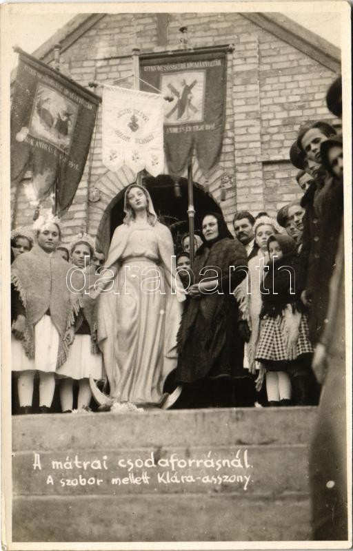 Mátra, Mária csodaforrásnál, a szobor mellett Klára asszony. Sztanek E... https://www.darabanth.com/de/416-Fernauktion/416.0/Ansichtskarten/Ungarn~2000012/Matra-Maria-csodaforrasnal-a-szobor-mellett-Klara-asszony-Sztanek-Ede-Paszto-photo-EK~II2622160
