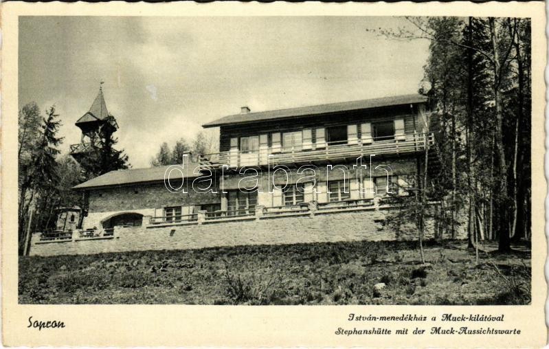 Sopron, István menedékház a Muck kilátóval https://www.darabanth.com/de/416-Fernauktion/416.0/Ansichtskarten/Ungarn~2000012/Sopron-Istvan-menedekhaz-a-Muck-kilatoval~II2611183
