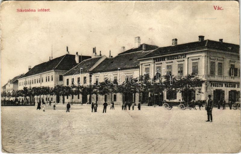 Vác, Siketnéma intézet, Tragor Ignác és fia üzlete (EK) https://www.darabanth.com/de/416-Fernauktion/416.0/Ansichtskarten/Ungarn~2000012/Vac-Siketnema-intezet-Tragor-Ignac-es-fia-uzlete-EK~II2611157