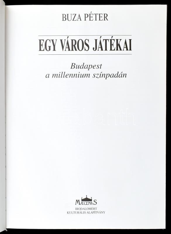 Buza Péter: Egy város játékai. Budapest a millennium színpadán. Bp., 1... https://www.darabanth.com/de/416-Fernauktion/416.0/Bucher/Bucher-Reise-und-Ortgeschichte~1000005/Buza-Peter-Egy-varos-jatekai-Budapest-a-millennium-szinpadan-Bp-1996-Maecenas-Fekete-f~II2621526