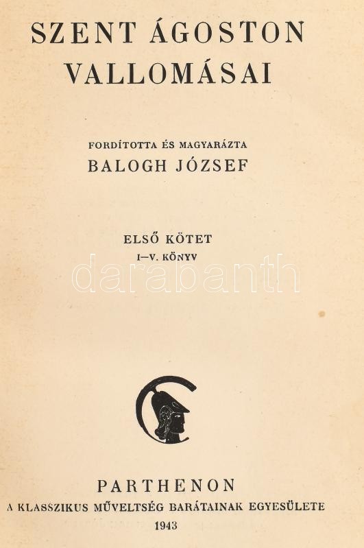 Szent Ágoston vallomásai I. kötet. (I. kötet: I-V. könyv, Fordította é... https://www.darabanth.com/de/416-Fernauktion/416.0/Bucher/Bucher-Religion~1000021/Szent-Agoston-vallomasai-I-kotet-I-kotet-I-V-konyv-Forditotta-es-magyarazta-Balogh-J~II2617798