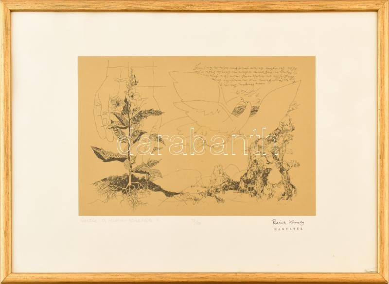 Reich Károly (1922-1988): Goethe: A kedves közelléte II. Szitanyomat, papír, jelzett a nyomaton. Paszpartun számozott: 10/10 és Reich Károly hagyaték felirattal. Üvegezett fa keretben, 21×32 cm