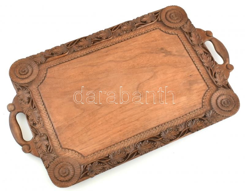 Faragott fa tálca, szélein levelekkel díszített ornamentikával, XX. sz... https://www.darabanth.com/de/416-Fernauktion/416.0/Kunst-Dokumente-andere-Sammelgebiete/Antik~500008/Faragott-fa-talca-szelein-levelekkel-diszitett-ornamentikaval-XX-sz-masodik-fele-apro-ko~II2579129