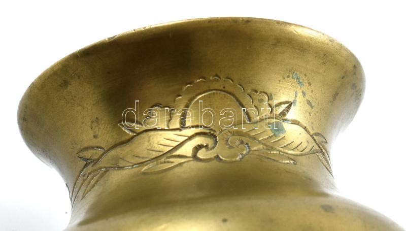 Beschreibung: Japán 1920 körül bronz váza, relief sakura (cseresznyevirágzás) és madár ábrázolással, kopásnyomokkal, alja javított, m: 18 cm