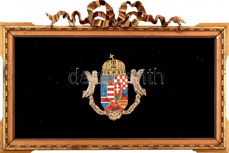 Magyar címer. Festett fém. 18x18 cm. Dekoratív, sérült fakeretben, ker... https://www.darabanth.com/de/416-Fernauktion/416.0/Kunst-Dokumente-andere-Sammelgebiete/Antik~500008/Magyar-cimer-Festett-fem-18x18-cm-Dekorativ-serult-fakeretben-keret-meret-kb-41x64-cm~II2610373