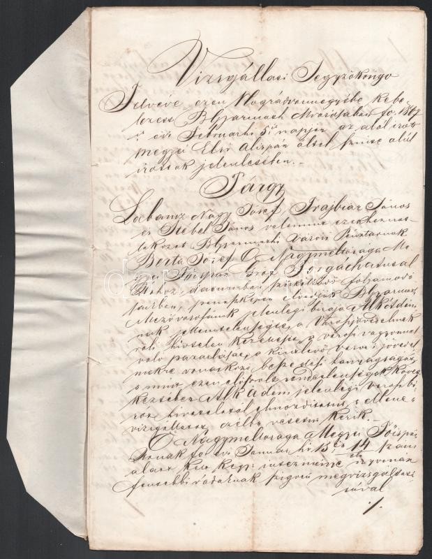 1867 Vizzgálati jegyzőkönyv, számos aláírással, közte Pongrácz Károly Nógrád vármegye első alispánjának aláírásával, valamint a Pongrácz család címeres viaszpecsétjével.