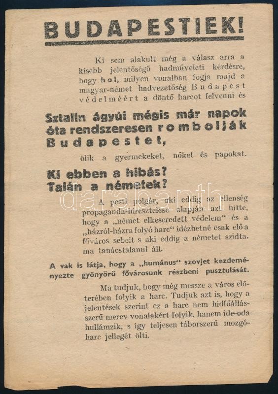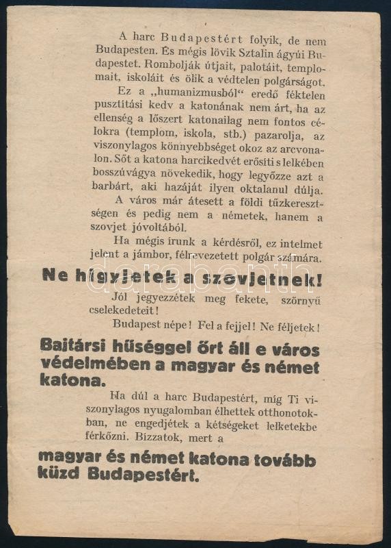1944 december németpárti propaganda szórólap az ostromlott Budapestnek https://www.darabanth.com/de/416-Fernauktion/416.0/Kunst-Dokumente-andere-Sammelgebiete/Drucksachen~1000002/1944-december-nemetparti-propaganda-szorolap-az-ostromlott-Budapestnek~II2621059