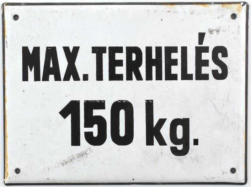 Max. terhelés 150 kg, zománcozott fém tábla, kisebb sérülésekkel, 15×2... https://www.darabanth.com/de/416-Fernauktion/416.0/Kunst-Dokumente-andere-Sammelgebiete/Flohmarkt~500012/Max-terheles-150-kg-zomancozott-fem-tabla-kisebb-serulesekkel-15C39720-cm~II2619574