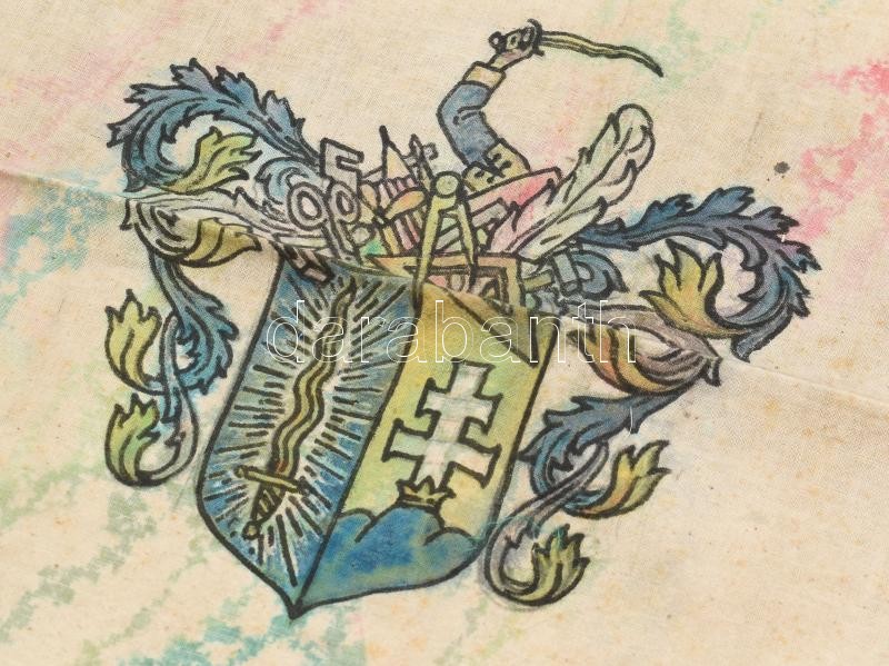 XX. sz. közepe Kézzel rajzolt zászló fantázia címerrel. Építész, szabó... https://www.darabanth.com/de/416-Fernauktion/416.0/Kunst-Dokumente-andere-Sammelgebiete/Historische-Dokumenten-Handschriften~500019/XX-sz-kozepe-Kezzel-rajzolt-zaszlo-fantazia-cimerrel-Epitesz-szabo-cimere-Vaszon-~II2619071