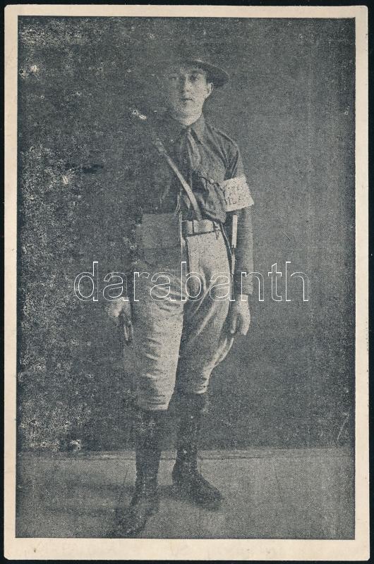 Beschreibung: cca 1927 Bíró Antal várpalotai lakos autográf aláírása őt ábrázoló kép hátoldalán, Budapestről indult gyalogos Föld körüli útjának támogatására kiadott kártyán