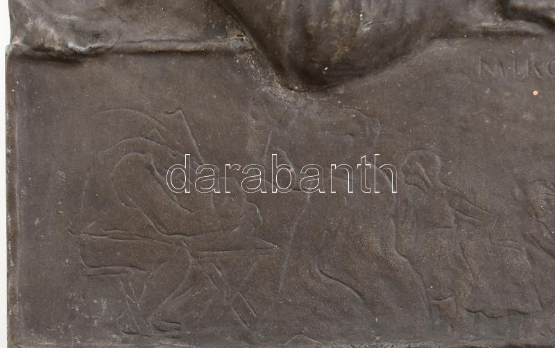 Telcs Ede (1872-1948): "Mikor én még legény voltam" Fém dombormű karcolt felirattal. Jelzett. 22x26 cm