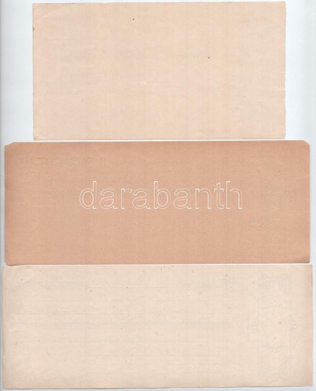 ~1890-~1920. 3xklf váltó tétel, benne "Ászár 189..", "B... https://www.darabanth.com/de/416-Fernauktion/416.0/Numismatik/Aktien-und-Tickets~1500005/7E1890-7E1920-3xklf-valto-tetel-benne-Aszar-189-Budapest-19-es-Lubich-alap-19~II2622550