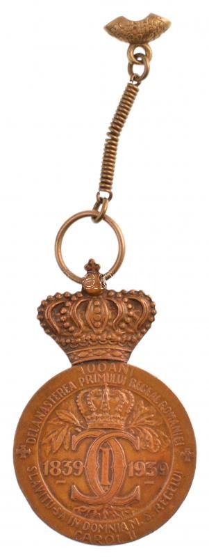 Románia 1939. "I. Károly Centenáriumi Érem" Br kitüntetés mellszalag nélkül. Szign.: W. Becker T:2,2- Romania 1939. "Medal for the Centenary of King Carol I" Br decoration without ribbon. Sign.: W. Becker C:XF,VF