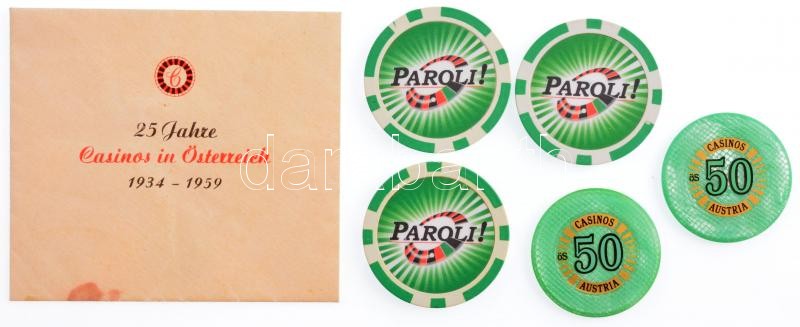 Ausztria DN 5db-os műanyag kaszinózseton-tétel + 1959-es díszboríték a... https://www.darabanth.com/de/416-Fernauktion/416.0/Numismatik/Notgeld-aus-Papier-und-Metall~1500006/Ausztria-DN-5db-os-muanyag-kaszinozseton-tetel-plus-1959-es-diszboritek-az-osztrak-kaszinok-25~II2619352