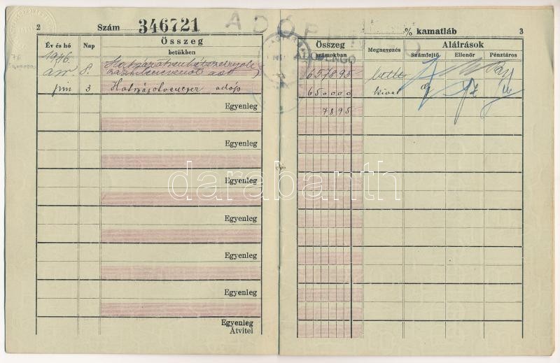 1946. "Angol-Magyar Bank Részvénytársaság" betétkönyve, beje... https://www.darabanth.com/de/416-Fernauktion/416.0/Numismatik/Numismatische-Dokumente-und-Briefe~1500003/1946-Angol-Magyar-Bank-Reszvenytarsasag-betetkonyve-bejegyzessel~II2621928