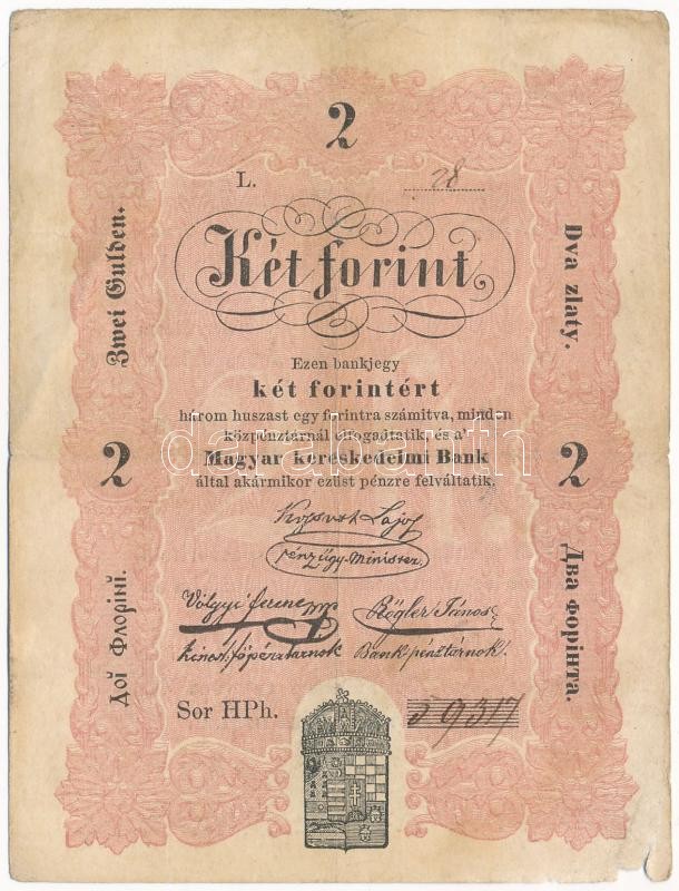 Beschreibung: 1848. 2Ft "Kossuth bankó" "HPh 59317" T:III kis anyaghiány