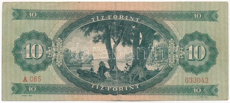 1949. 10Ft "A 065 033043" T:III Adamo F3 https://www.darabanth.com/de/416-Fernauktion/416.0/Numismatik/Ungarische-Banknoten~1500007/1949-10Ft-A-065-033043-TIII-Adamo-F3~II2622879