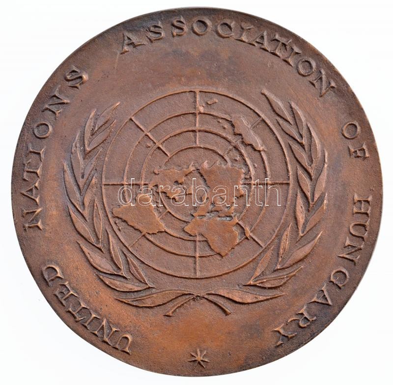 Beschreibung: Lebó Ferenc (1960-) "Béke, fejlődés, együttműködés / United Nations Association of Hungary" Br emlékérem eredeti tokban (106mm) T:2