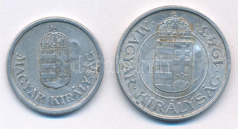 1941. 1P Al hamis sarló-kalapács ellenjeggyel + 1943. 2P Al hamis sarl... https://www.darabanth.com/de/416-Fernauktion/416.0/Numismatik/Ungarische-Munzen-und-Munzen-mit-ungarischem-Munzzeichen~1500008/1941-1P-Al-hamis-sarlo-kalapacs-ellenjeggyel-plus-1943-2P-Al-hamis-sarlo-kalapacs-ellenjeggyel-T~II2617519
