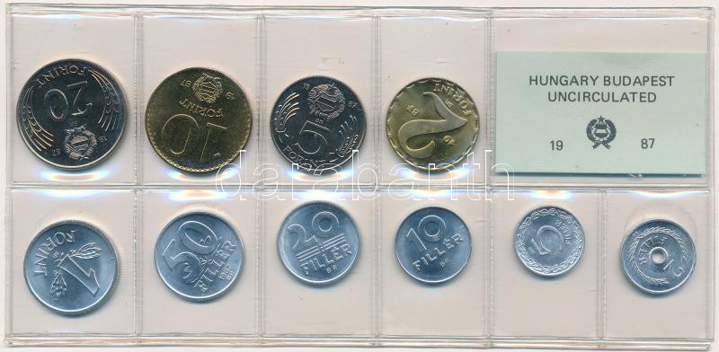 1987. 2f-20Ft (10xklf) érmés forgalmi sor fóliatokban T:1 Adamo FO20 https://www.darabanth.com/de/416-Fernauktion/416.0/Numismatik/Ungarische-Munzen-und-Munzen-mit-ungarischem-Munzzeichen~1500008/1987-2f-20Ft-10xklf-ermes-forgalmi-sor-foliatokban-T1-Adamo-FO20~II2622953