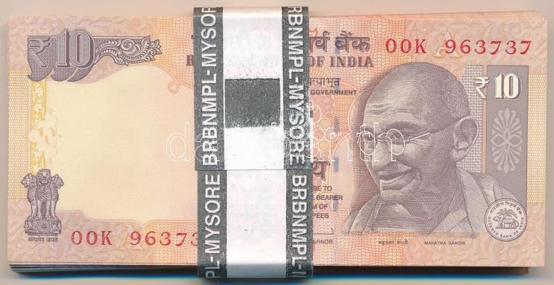 Beschreibung: India 2013. 10R (64x) eredeti banki kötegelővel, sorszámkövetők T:I India 2013. 10 Rupees (64x) with wrapper, consecutive serials C:UNC Krause P#102