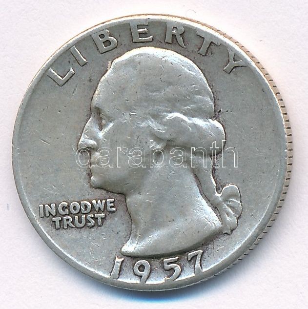 USA 1957. 25 Cen... https://www.darabanth.com/de/416-Fernauktion/416.0/Numismatik/Weltweit-Munzen~1500013/Amerikai-Egyesult-Allamok-1957-25c-Ag-T1-2-patina-USA-1957-25-Cents-Ag-CAU-XF-patina-Krause~II2621920
