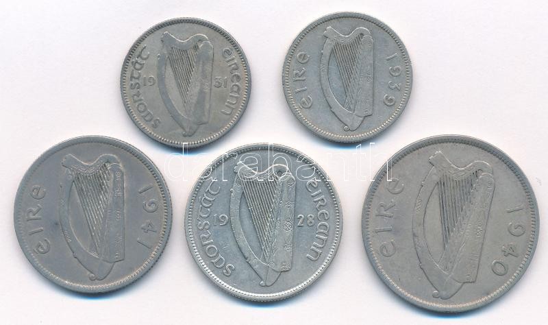 Írország 1931-1939. 1Sh Ag (2xklf) + 1928-1941. 2Sh Ag (2xklf) + 1940. 2Sh6p Ag T:2-3 patina Ireland 1931-1939. 1 Shilling (2xdiff) + 1928-1941. 2 Shilling Ag (2xdiff) + 1940. 2 Shilling 6 Pence Ag C:XF-F patina