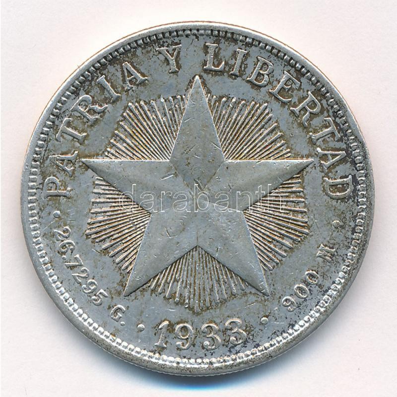Cuba 1933. 1 Peso Ag C:XF p... https://www.darabanth.com/de/416-Fernauktion/416.0/Numismatik/Weltweit-Munzen~1500013/Kuba-1933-1P-Ag-T2-patina-ph-kis-karc-Cuba-1933-1-Peso-Ag-CXF-patina-edge-error-small-scrat~II2605892